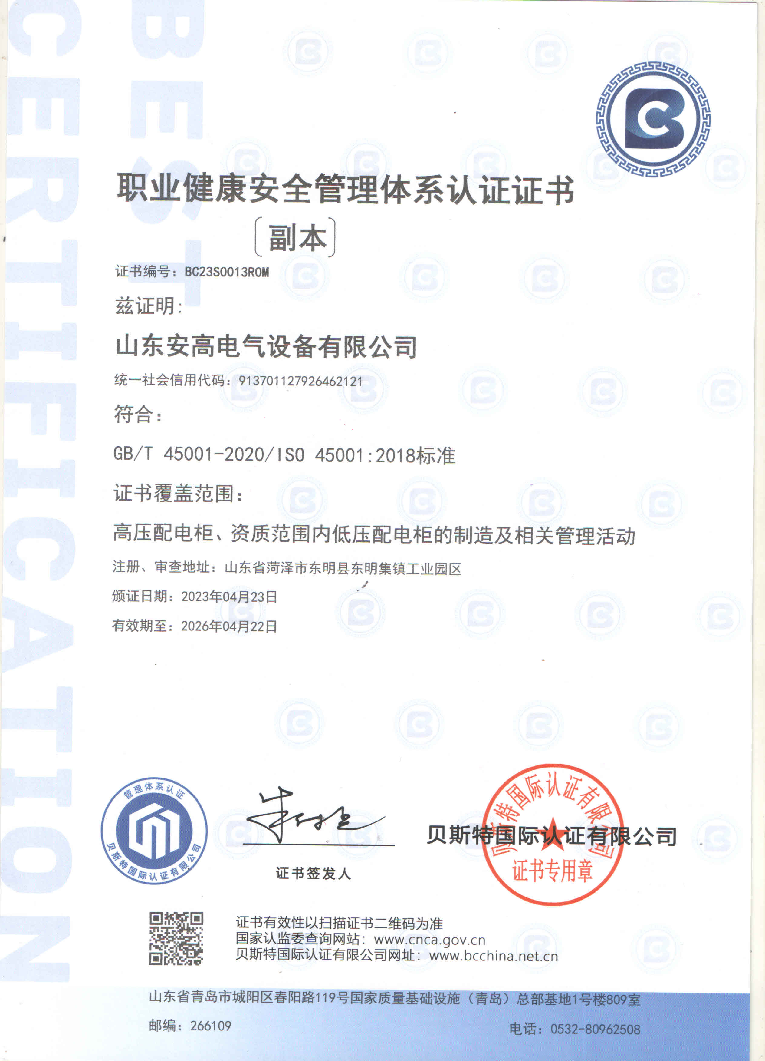 安高經(jīng)過(guò)了多年磨練,先后榮獲“守合同重信用企業(yè)”、“專(zhuān)精特新”中小企業(yè)、“質(zhì)量、服務(wù)、信譽(yù)AAA企業(yè)”、“國(guó)家合格評(píng)定質(zhì)量信得過(guò)產(chǎn)品”、“山東省高新技術(shù)企事業(yè)”等多項(xiàng)榮譽(yù)稱(chēng)號(hào)。